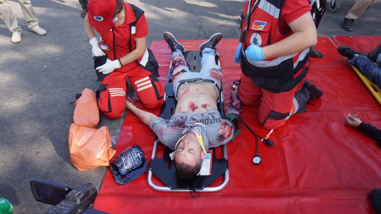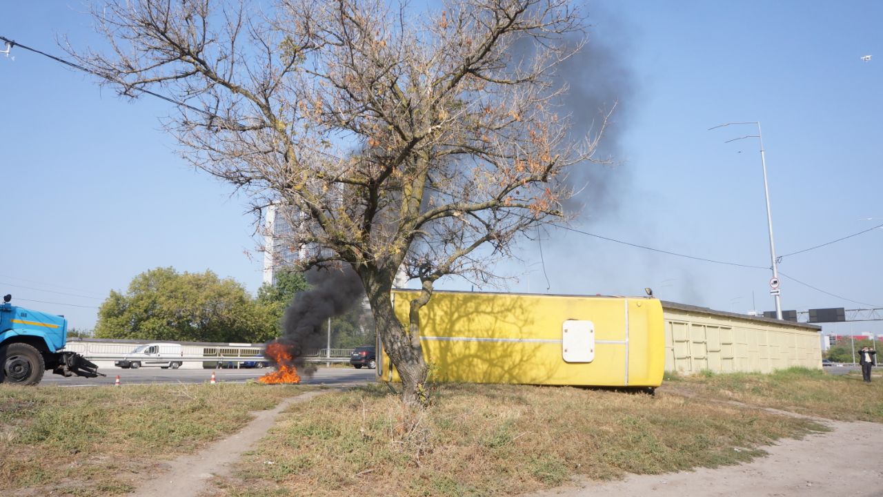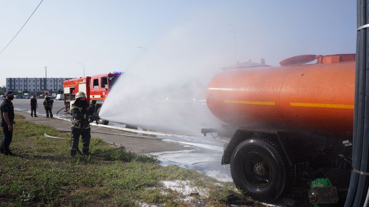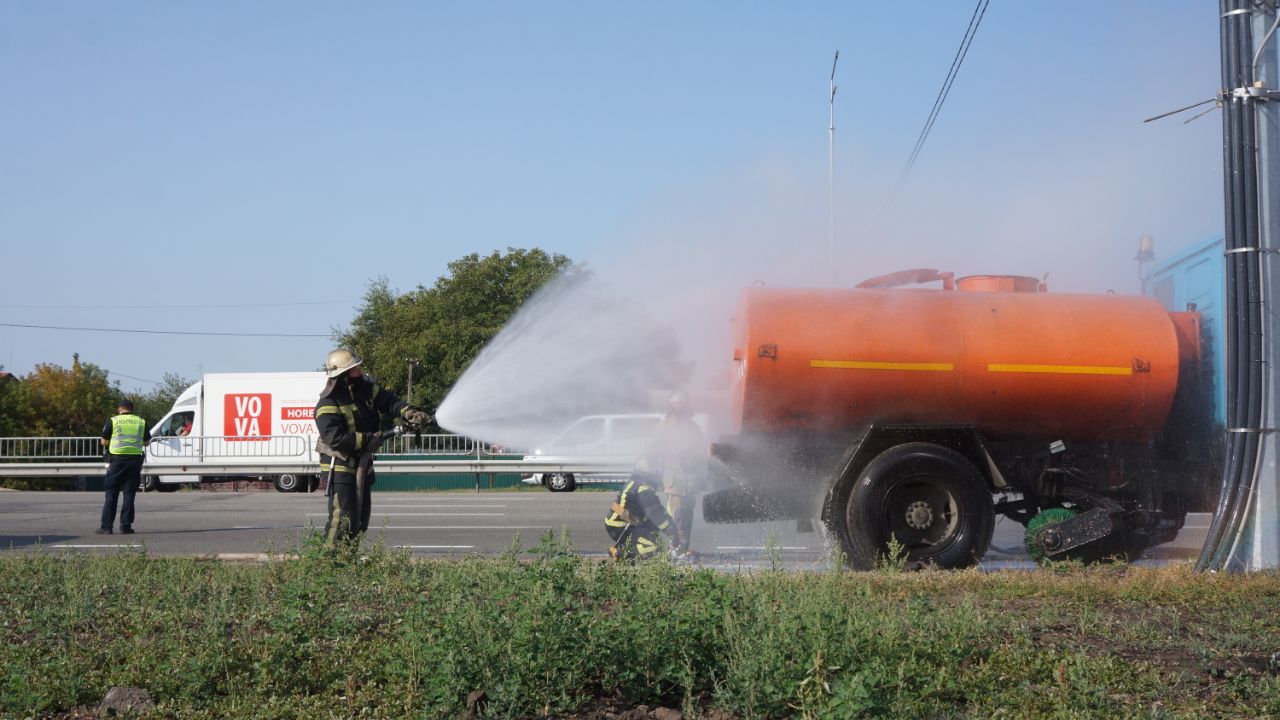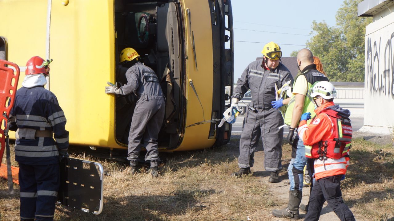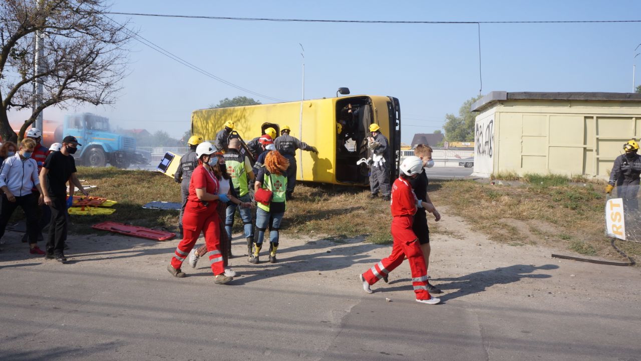 За сценарієм, патрульна поліція та інші екстрені служби відпрацьовують ситуацію зіткнення маршрутного транспортного засобу з бензовозом з подальшим загорянням та евакуацією людей.