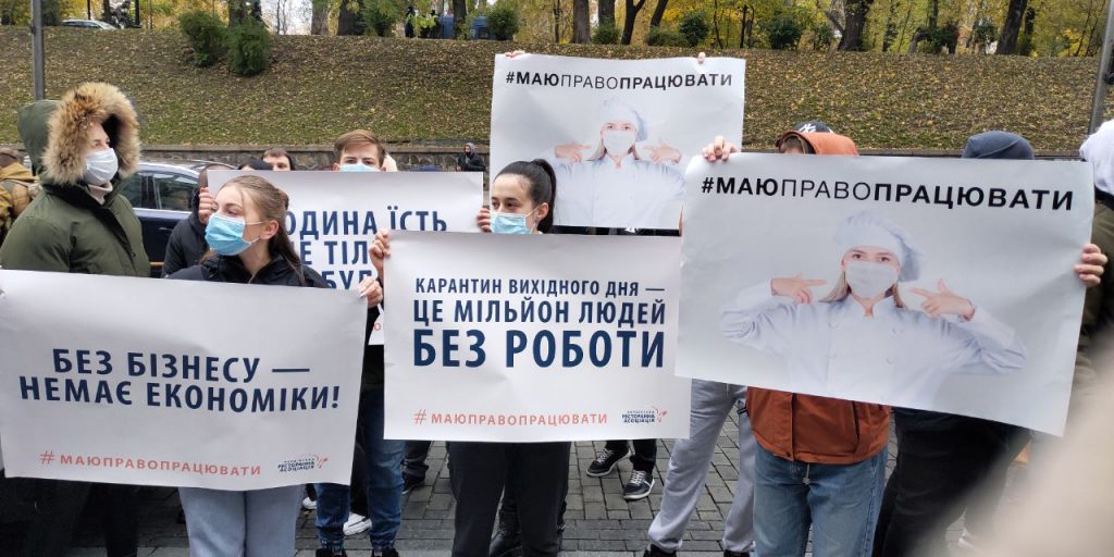 Більше тисячі працівників ресторанного бізнесу протестують проти карантину вихідного дня (ФОТО)
