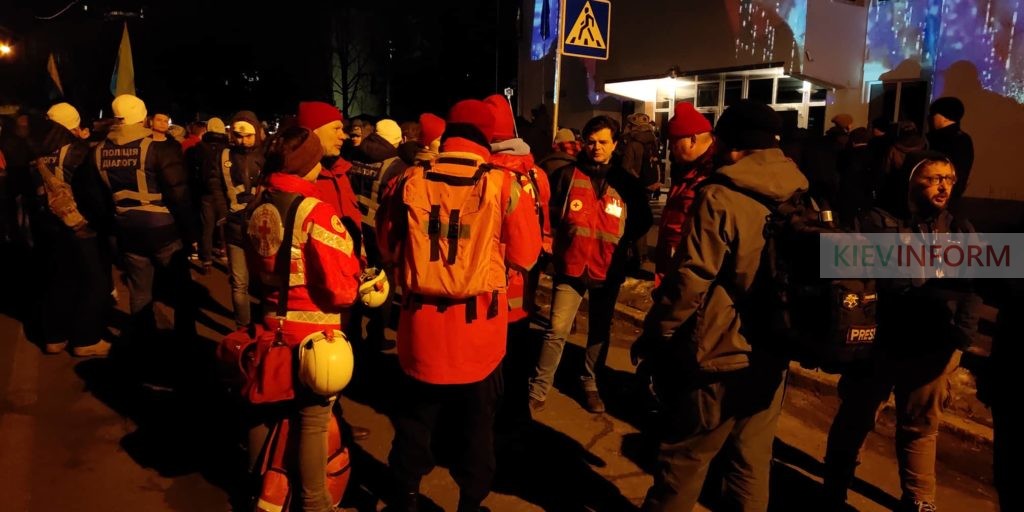 На акції чергує загін швидкого реагування Червоного Хреста міста Києва.