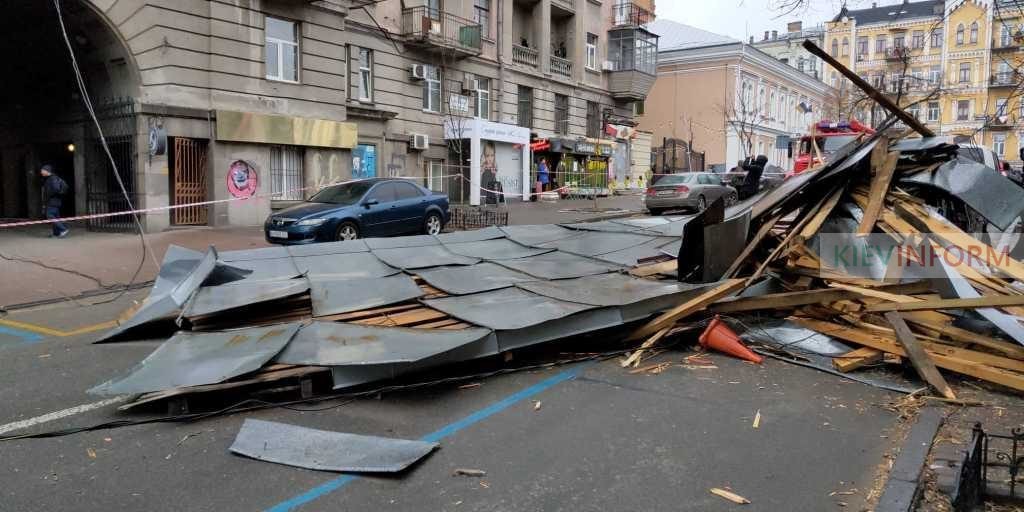 Обвал даху через сильний вітер у Києві: з'явилися фото (ФОТО)