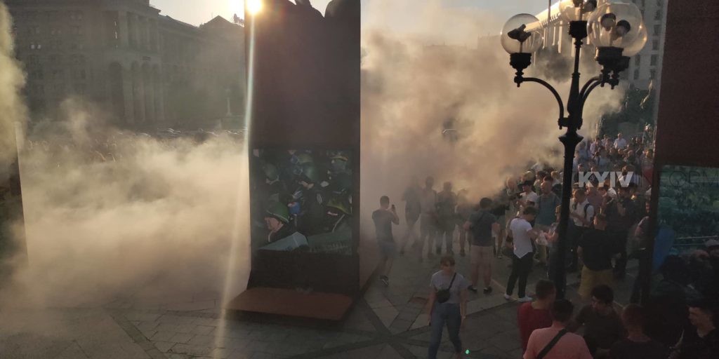 Коли дим спав, люди розгорнули плакати «Терпіти більше не можна», «Реваншуйте н**уй», «Ми втомились від лайна» та розпочали протест.
