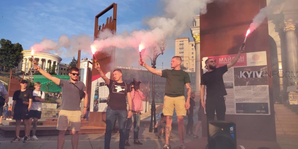 Перед тим, як розпочати акцію організатори запалили димові шашки, у результаті чого площа перед Монументом Незалежності вкрилася димом.