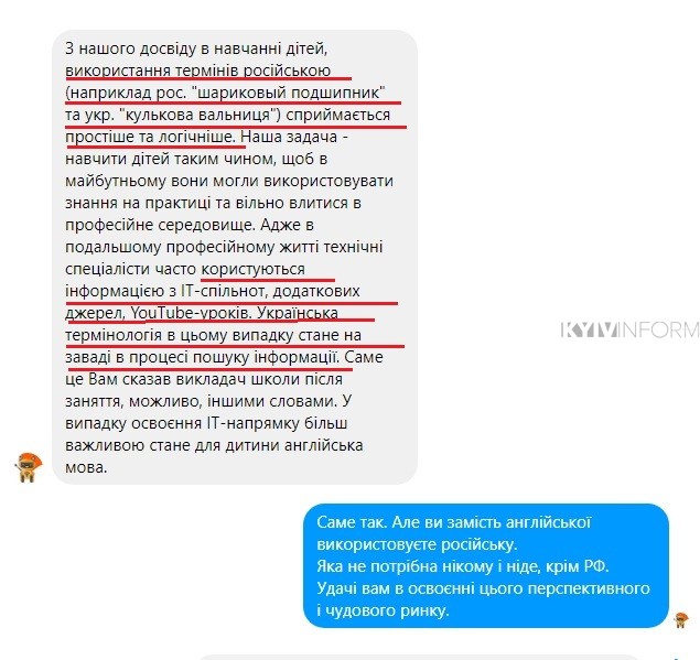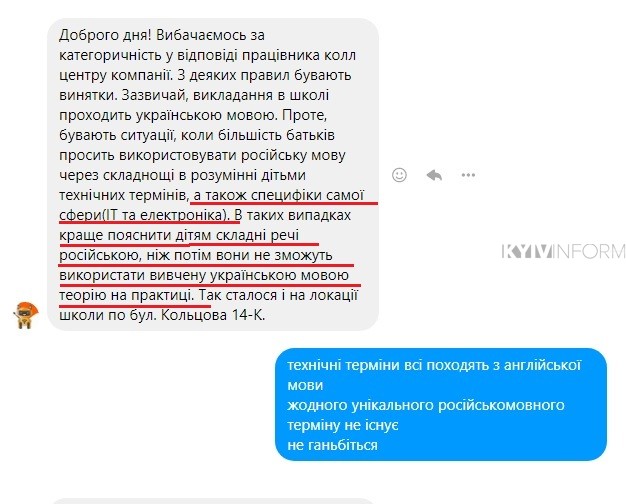 Згодом у школі пояснили, що “українська мова обмежена у термінах”, а тому вони “були змушені використати російську”.