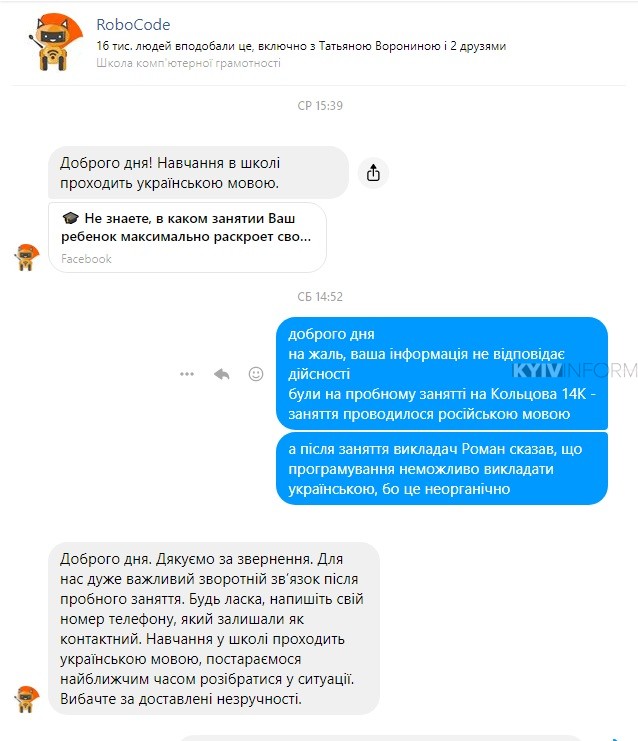 Відома київська ІТ-школа RoboCode потрапила у гучний мовний скандал.