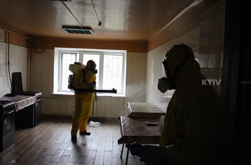 У Києві рятувальники провели санітарну обробку в приміщеннях гуртожитку, де жив інфікований коронавірусом студент.